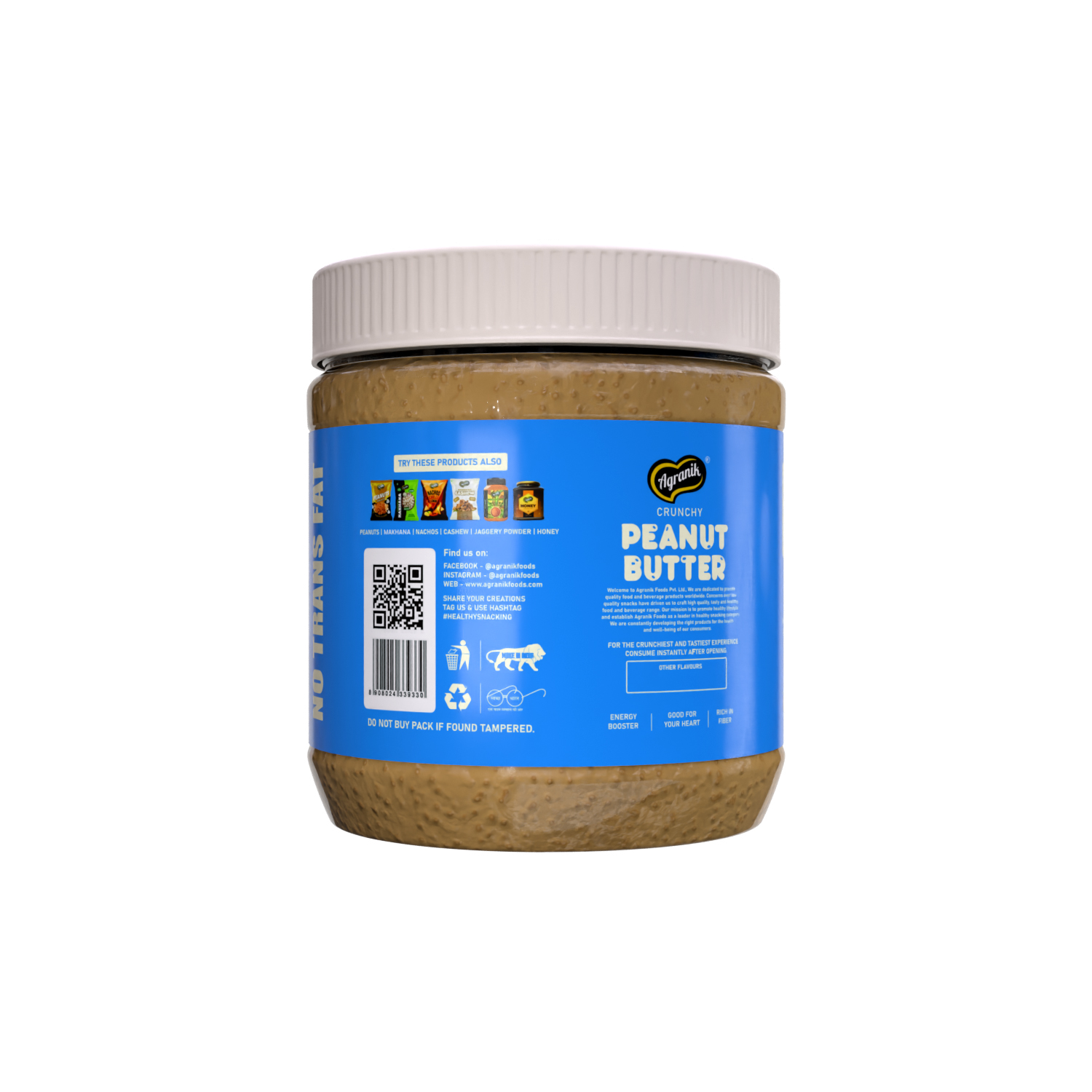 Savor the perfect crunch with our Crunchy Peanut Butter, made from premium roasted peanuts for an irresistible blend of texture and taste. Each bite delivers a satisfying crunch and rich nutty flavor, making it the ideal choice for peanut butter lovers who crave a little extra bite. Packed with protein, fiber, and healthy fats, it’s a nutritious way to fuel your day. Enjoy it on toast, in smoothies, with fruits, or straight from the jar. Free from artificial preservatives and additives, our Crunchy Peanut Butter offers pure, natural goodness in every spoonful.
